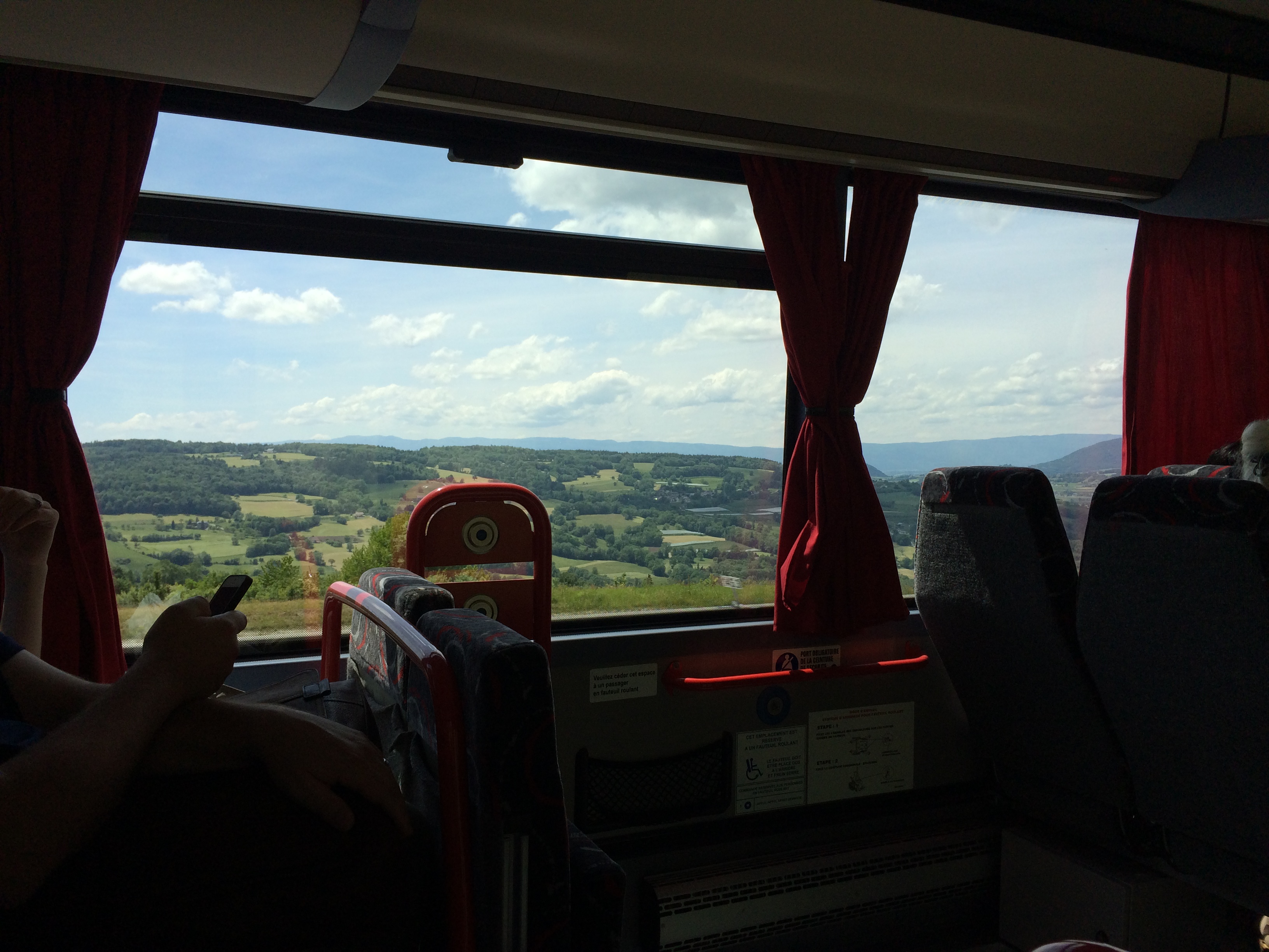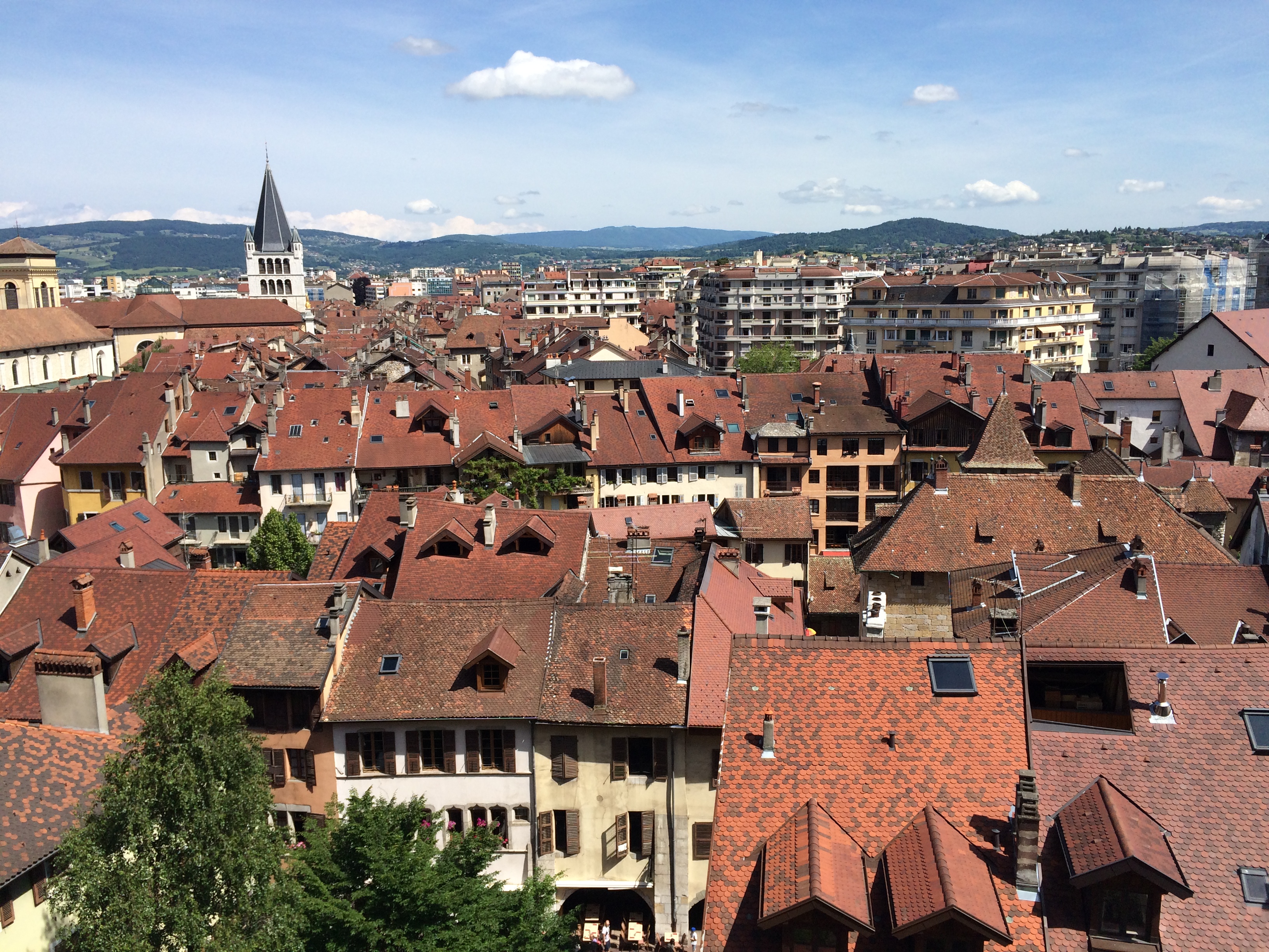 Stomachs satisfied, 40 minutes later,  we were sat on the train to the city (Gare de Geneve Cornavin). We took a leisurely stroll over to the coach station, Gare Routiere, where bought a couple of return tickets to Annecy. These were priced at 60CHF, if I remember correctly, roughly £40. Also worth noting that Annecy is in France, and since we knew we intended to take a little day trip we’d exchanged money into Euros before we left… It was around an hour drive with plenty of stops, due to it being the slow, Sunday service. But the views were superb. It’s pretty tricky getting a good picture from a moving vehicle because of the glare, focus and just being too slow, but here’s a semi-decent one that I took anyway: Coach Trip From Geneva To Annecy, Switzerland To France (3)The town seemed quite quiet initially…