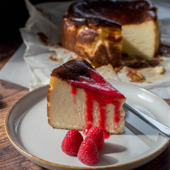 Burnt Basque (San Sebastián Style) Cheesecake With Raspberry Coulis