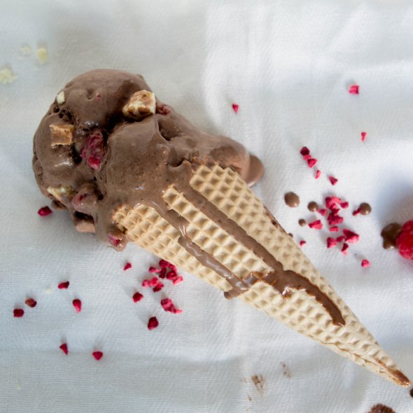 Chocolate Icecream With Raspberries & White Chocolate Chunks