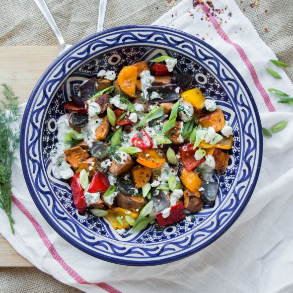 Roasted Sweet Potato Salad With Herby Yoghurt Drizzle & Feta